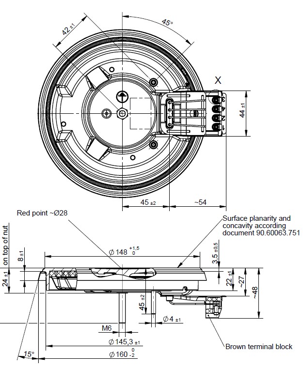 Kochplatte Ø 145mm 1500W / 400V mit 8mm Überfallrand