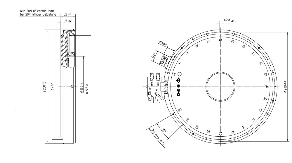 Der Strahlungsheizkörper von E.G.O. eignet sich für eine Vielzahl von Geräten und sorgt für eine effiziente Wärmeverteilung in Ihrer Küche. Mit einer Gesamtleistung von 2.500 Watt und einer Nennspannung von 230 Volt bietet er eine zuverlässige Heizleistung.